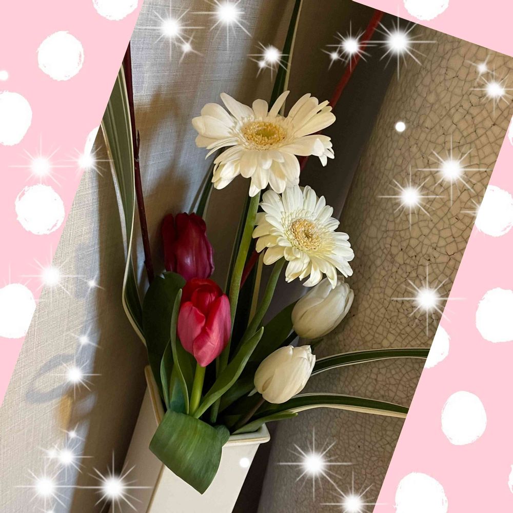 ガーベラ、ききょうの葉、チューリップ、サンゴミズキ😌を頂きました。