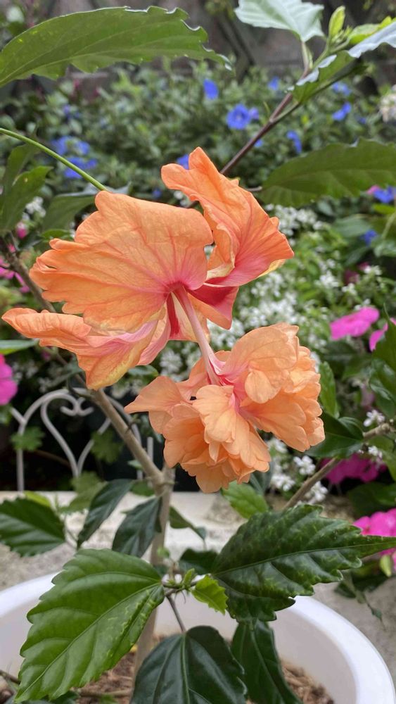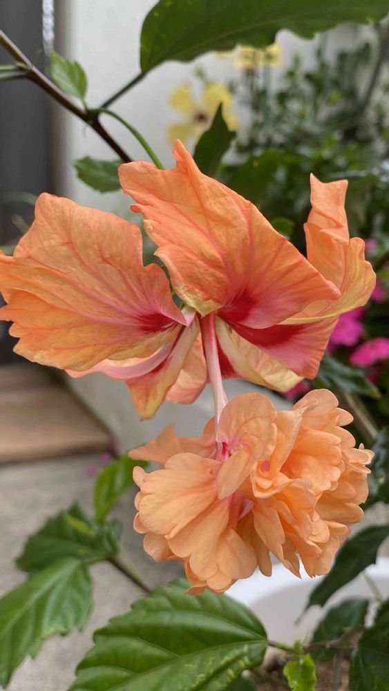オレンジ色🧡のハイビスカス🌺フラミンゴ🦩優しい色と二重咲きが素敵ですよね💕🥰
