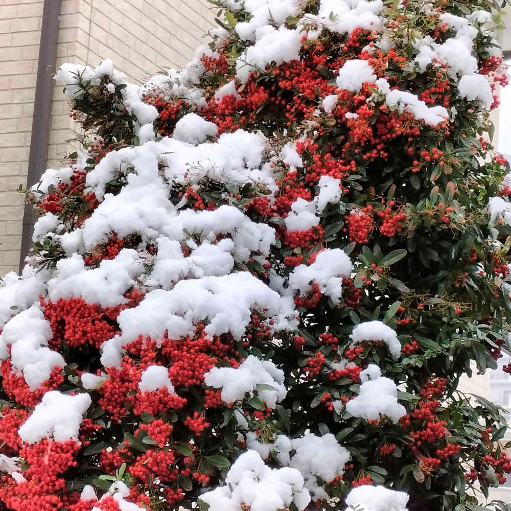 ピラカンサの上にも雪❅