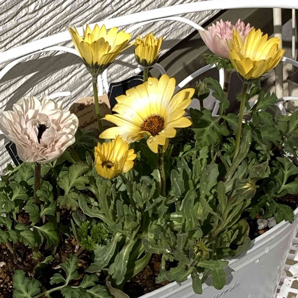 パステリーナとアネモネクラシカルピンクを楕円のブリキ鉢に植えました🪴