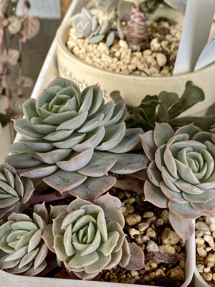 ベランダでおしくらまんじゅうしてる多肉ちゃんたち。