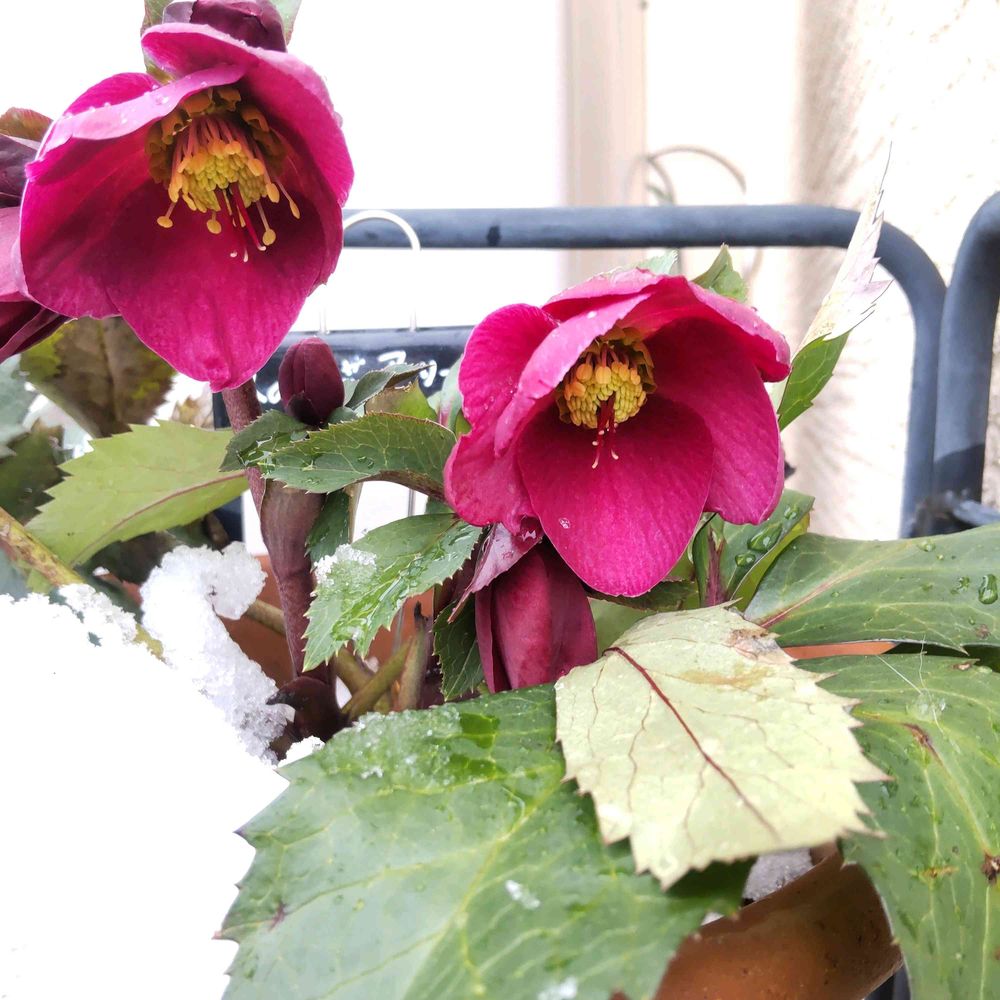 Chieko☆さんのお庭の方が☃️たくさん降ってるのに〜クリスマスローズ咲くの早い〜😅