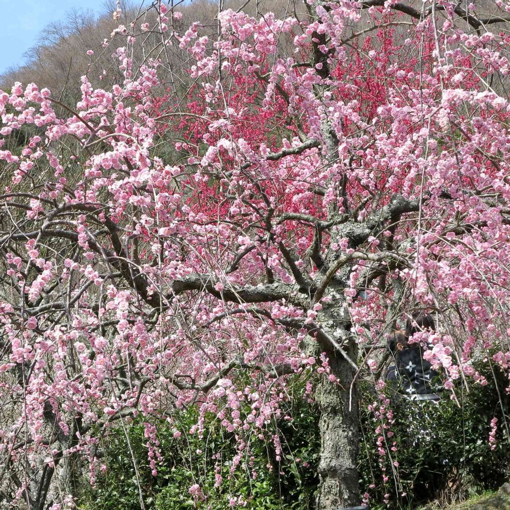 前か枝垂れ梅後ろが紅梅でとても綺麗に咲いていました。