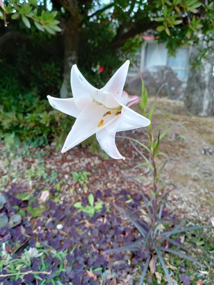 鉄砲百合は真っ白で、葉っぱは笹の葉っぱのような形になります😉🎶