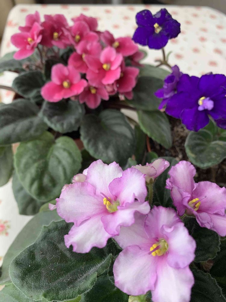 12月に紫のセントポーリアが咲き始め、次に濃いピンク、最後に手前のピンクが咲いてくれました✌️