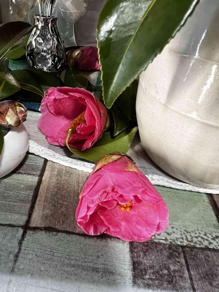 花瓶に生けてあった枝から花ごと落っこちていました💦