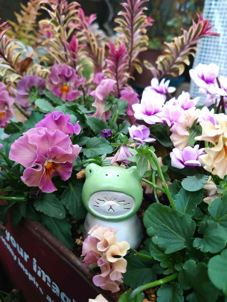 3️⃣パンジーとシクラメンとカエル猫🐸