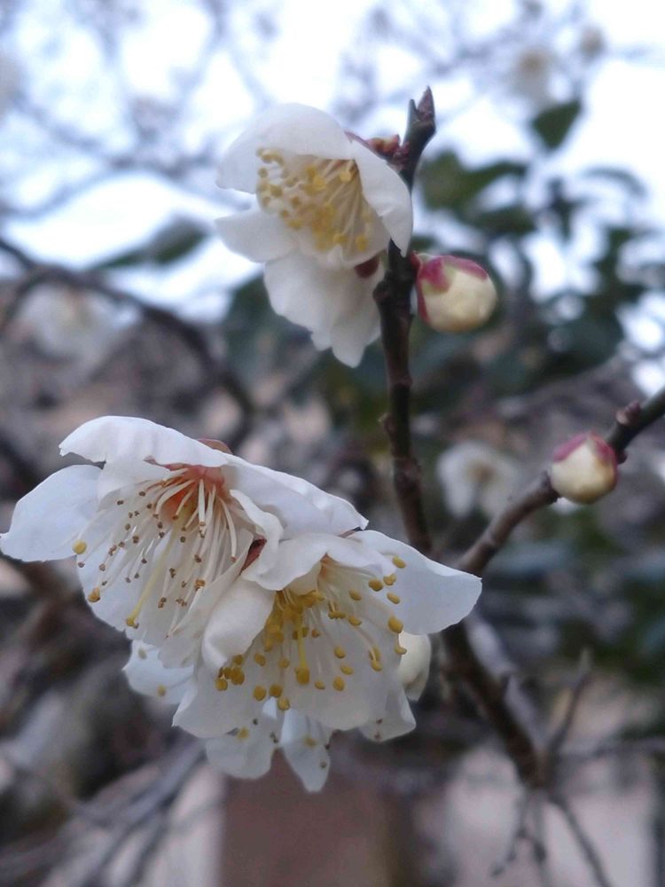 うちは梅の剪定してないからぼうぼうの枝にお花咲いてるよ😿