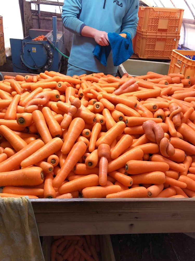 ニンジンの出荷しています。あらら ネジネジのとか こけしみたいなの