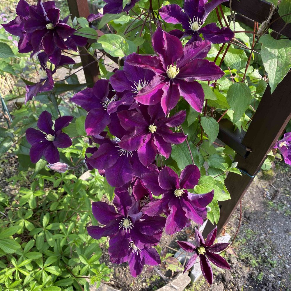 実際に見るとベルベット風質感の花弁で深い紫色です。とても大人クレマチスだと思います。
