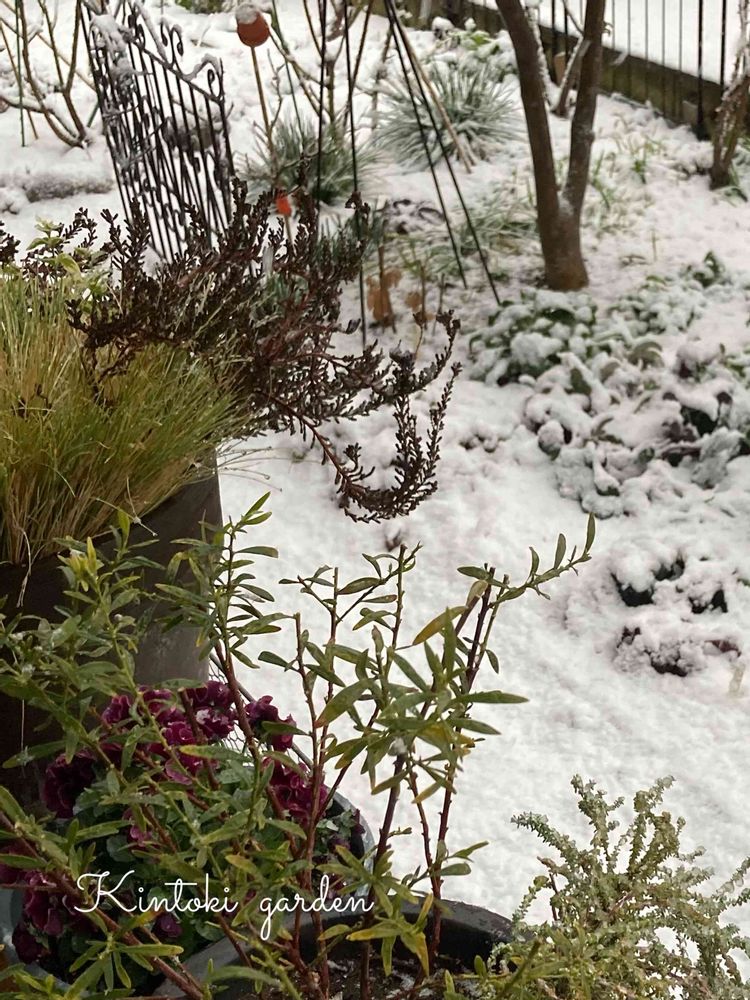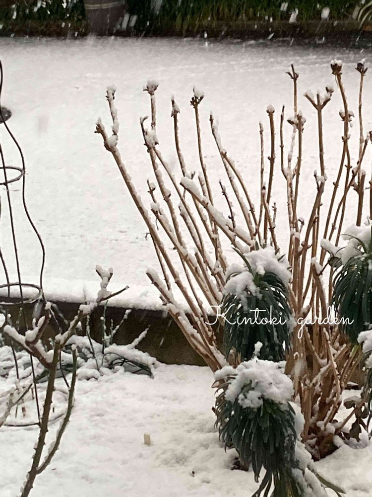 雪が積もって❄️花の枝が折れたのもあるけれど短い雪の世界を楽しめましたね🎶