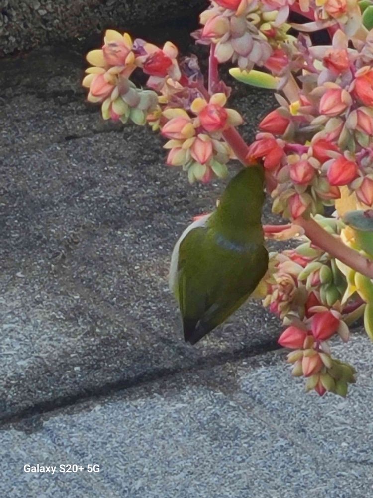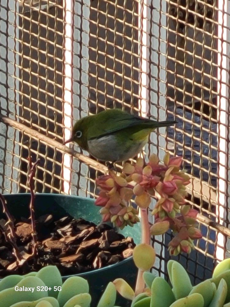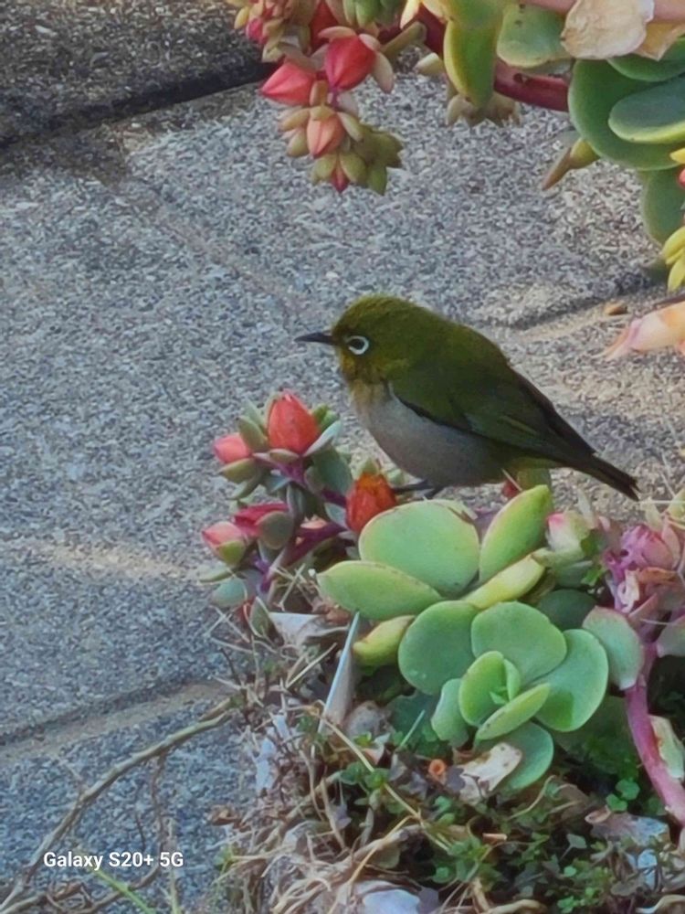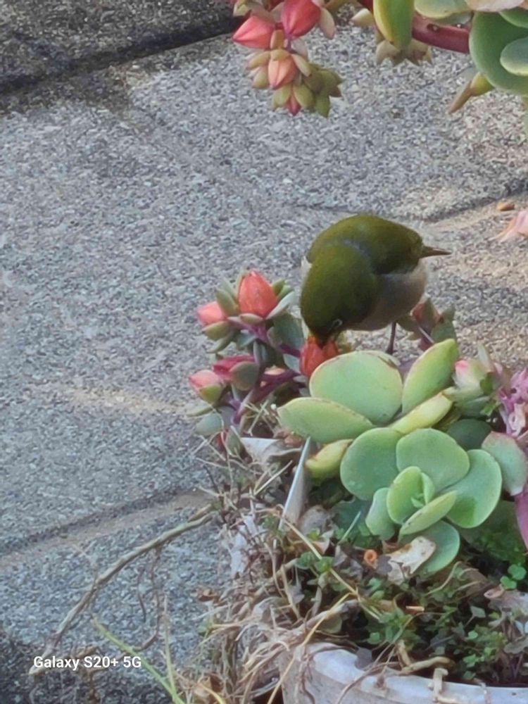 かわいい😍ですね〜 怖がりもせず蜜を吸ってメジロさんも良い日になりましたね🎶☺️