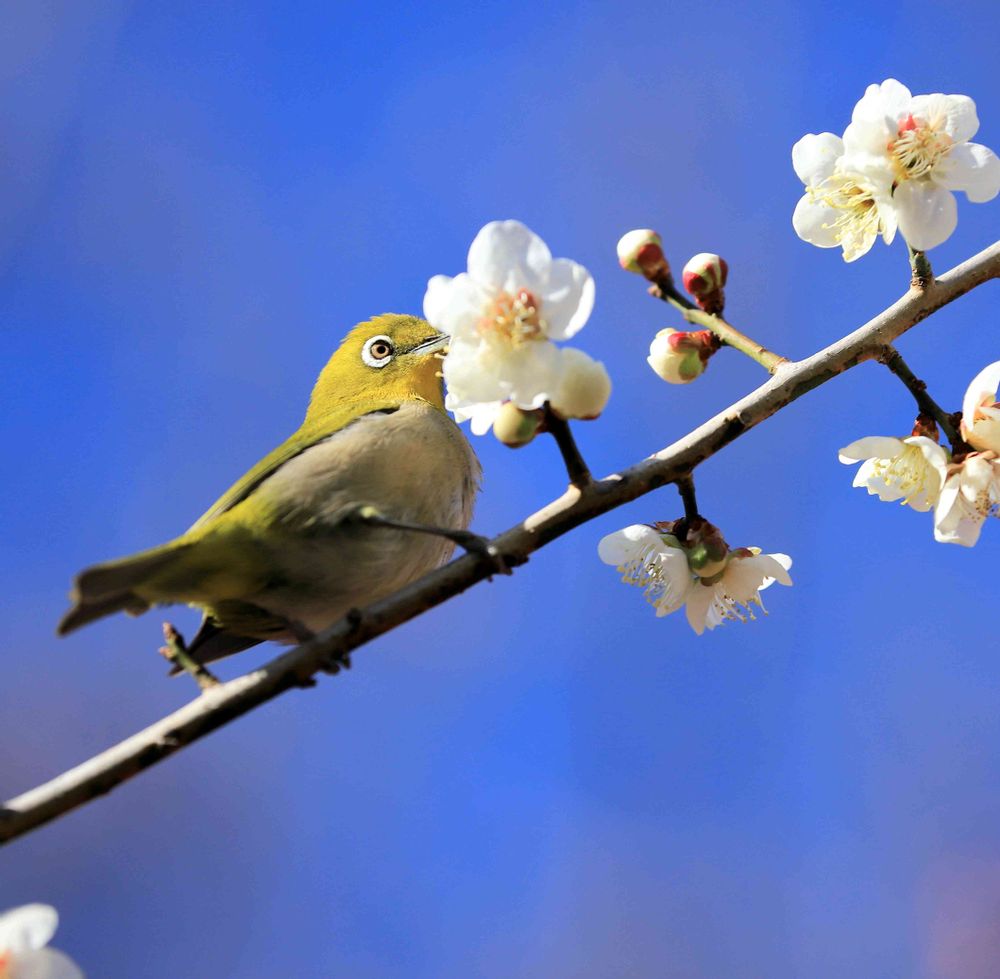 📷で梅を撮っていると、そこにメジロがやってきました✌️