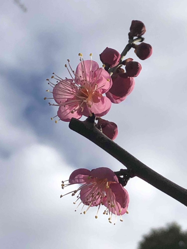 夕日を浴びてピンク色に輝く梅「道知辺(みちしるべ)」をパチリ!📸