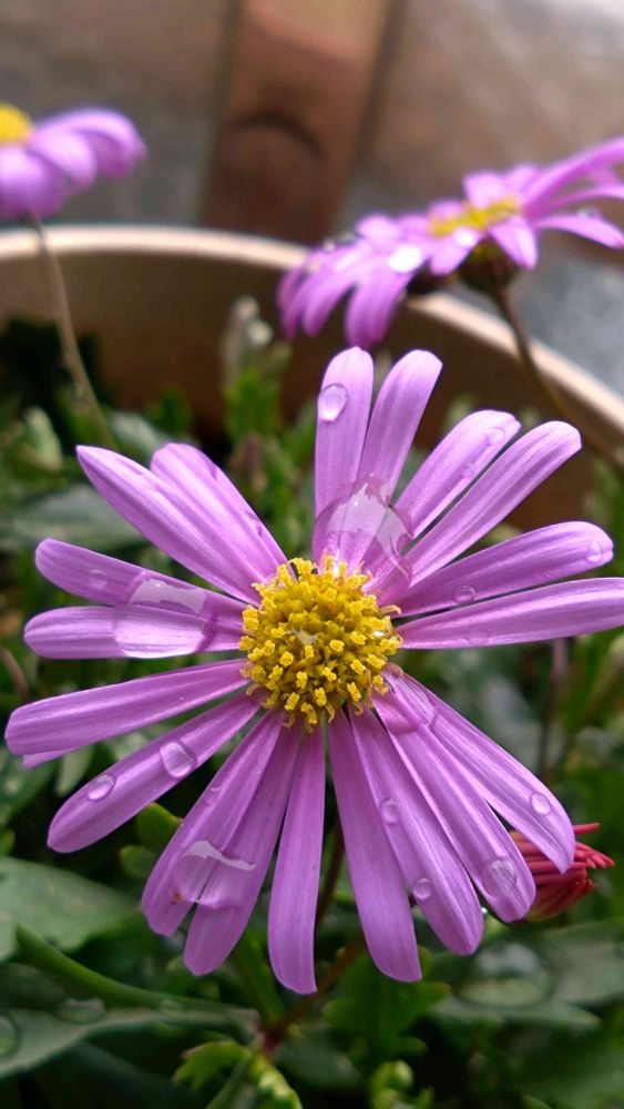 ベランダに吹き込んだ雪が積もったブラキカムやネメシアさん、雪が溶けて水滴に…🫧🫧