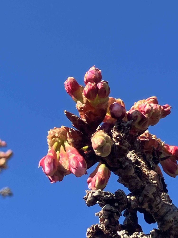 寒桜の蕾逞しい枝に、もう少しで開花ね💕