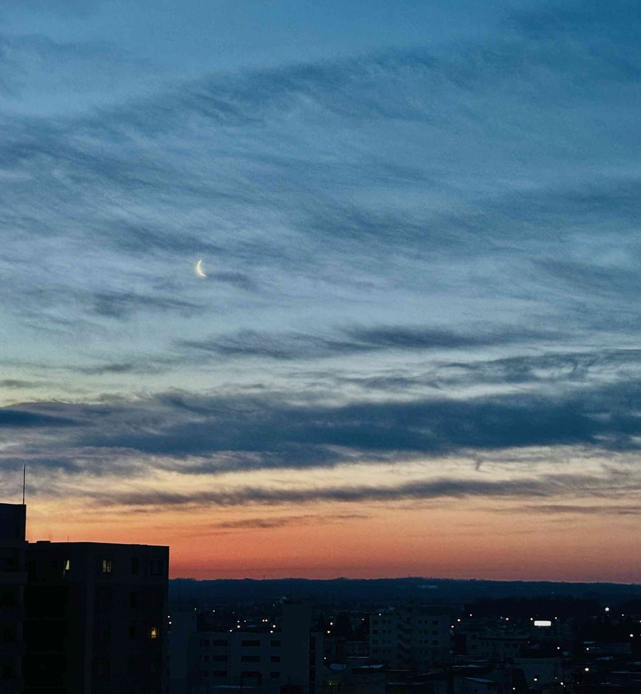 #朝焼けと三日月🌙