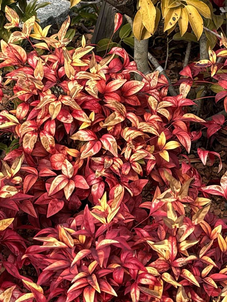 おたふく南天は背が低いから寄せ植えに使います。普通の南天より真っ赤になるから、葉牡丹と相性が良いよ😊
