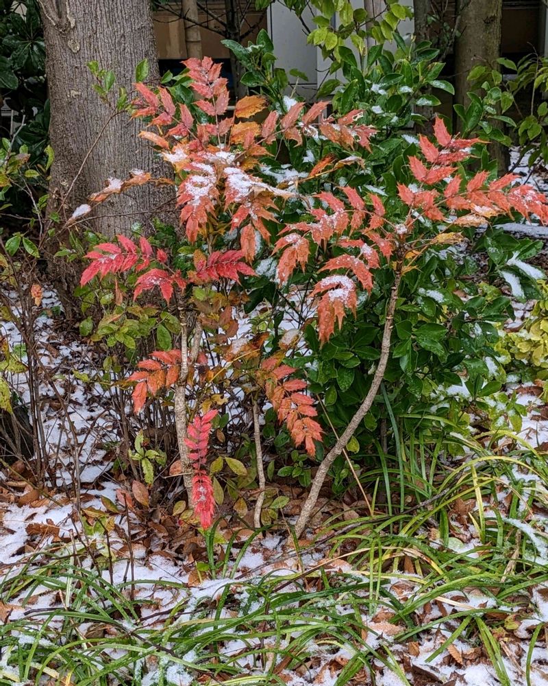紅葉した葉に雪が少し残るのが素敵ですね~
