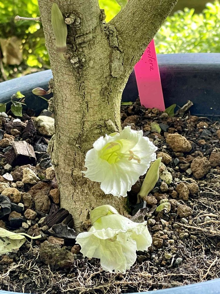 太い幹の根元からの 白いお花が優雅で 蕾が蝋燭かと思いました🕯️