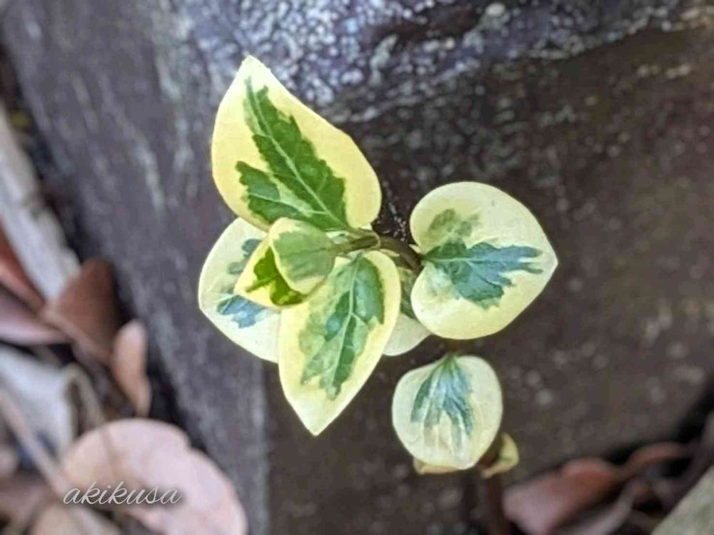 春から初夏に素敵な青紫の花を茎の葉腋に咲かせてくれるのが今から楽しみです でもアプローチの方に旺盛にある緑葉のものより花付きは多くありません