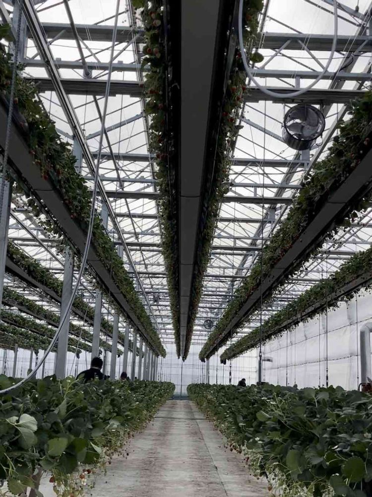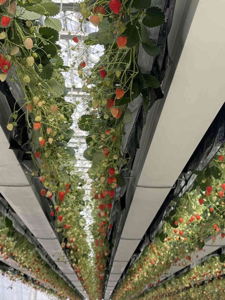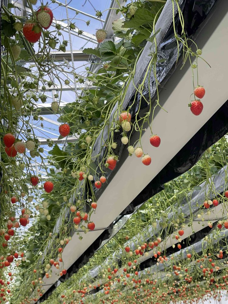 いちごが宙に浮いている「空中いちご園」リフト式いちご農園では日本最大級らしいです。