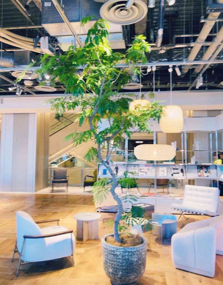 昼下がり、麻布台ヒルズで開催中の吉田花子さんの抽象画展を満喫後、お立ち寄りしたコンランショップのスペースに、今にも天井に届きそうな存在感を放つ「エバーフレッシュ」と出会えました🌿☺️🌿
