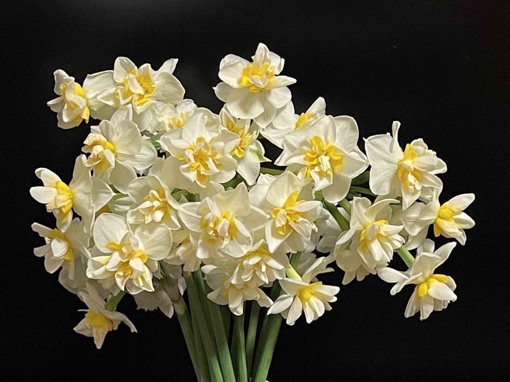 この水仙は、ニホンスイセンの八重咲きのようです💛なので、早咲きの品種なのかな。