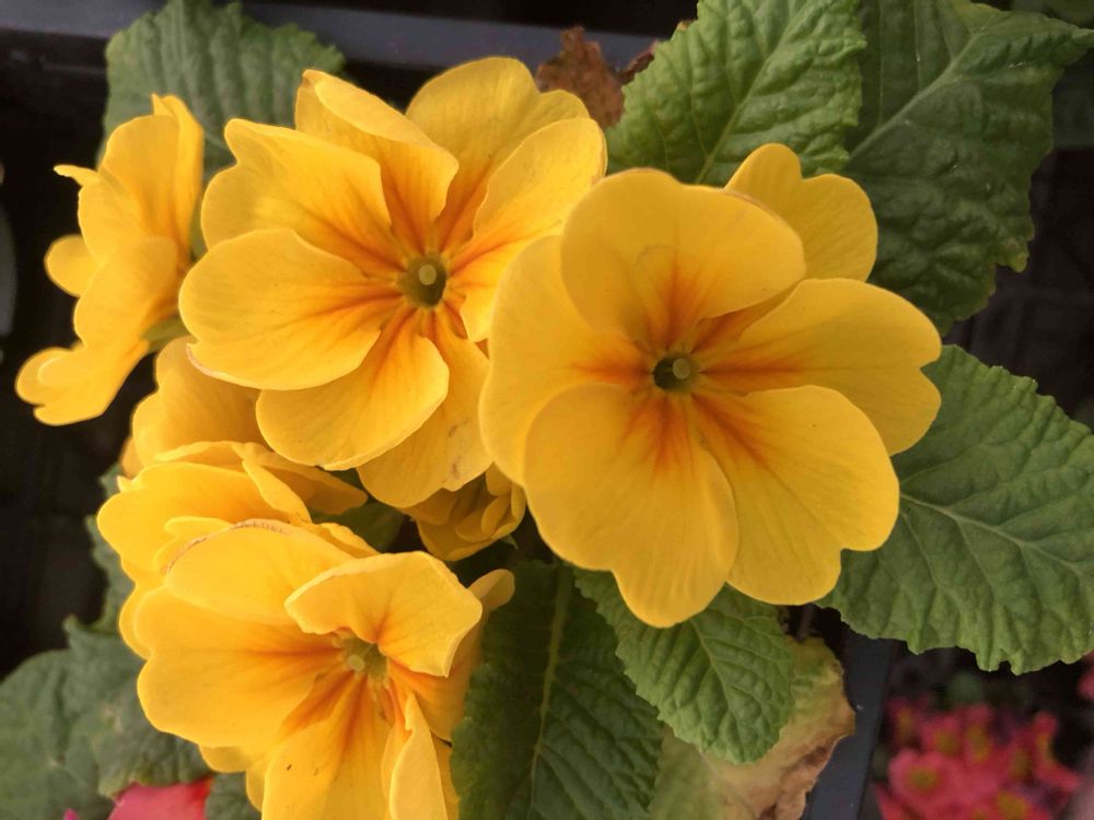 夕暮れ時、ホームセンターにて、黄色い「プリムラ ジュリアン」をパチリ!📸💛🌿😄🤗🌇👌