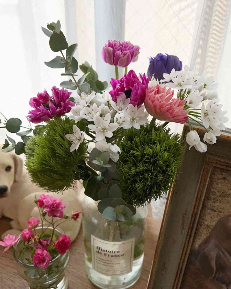 コワニーとアネモネの小さなブーケは花屋の店先で惹かれて購入。