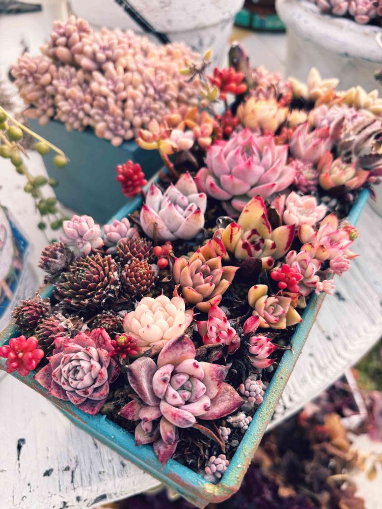 野ざらしの寄せ植え、小さい子やセダムは結構居なくなっちゃって😭スカスカしてますが綺麗に紅葉してます🍁