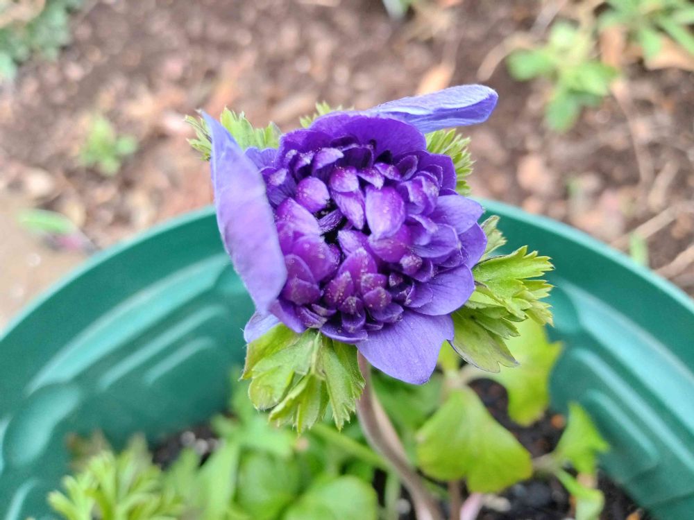 アネモネ八重咲き綺麗😍。欲しくて買ったのは、一重咲きですが満足😁。窮屈そうだから植え替えしたら元気⤵️回復するかな?。
