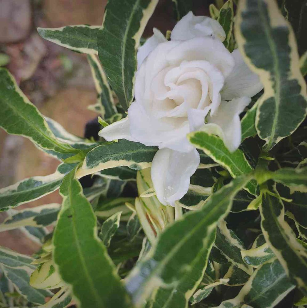 斑入りの葉のクチナシの花、初めて見ました。綺麗ですね✨