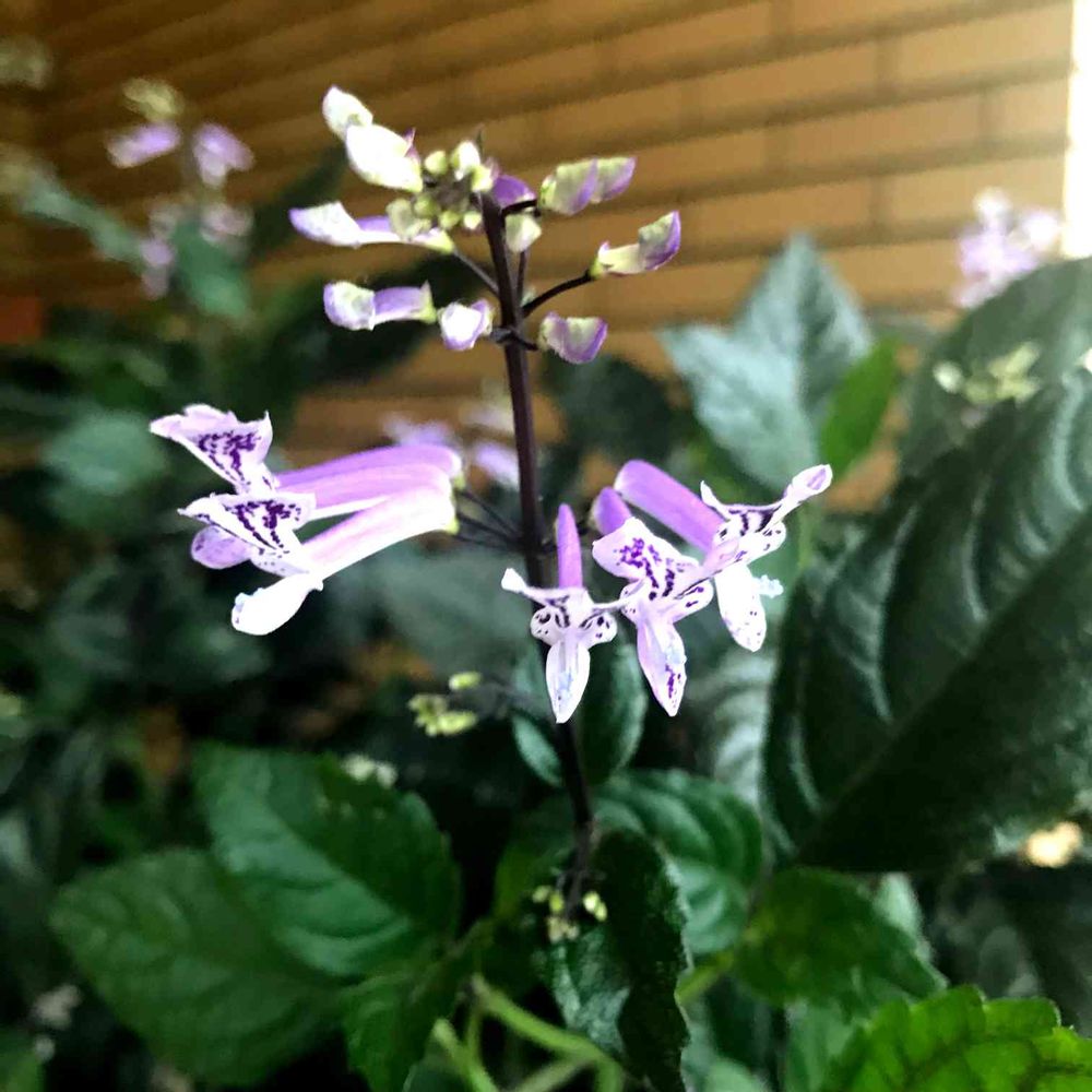 ラベンダーとは同じシソ科ですが、葉っぱは全然違うので、ラベンダーの種類とは違うような? 葉っぱが幅広で表面に産毛?が生えていて表がくらい緑、裏が紫っぽい色です。葉っぱだけでも綺麗です💜