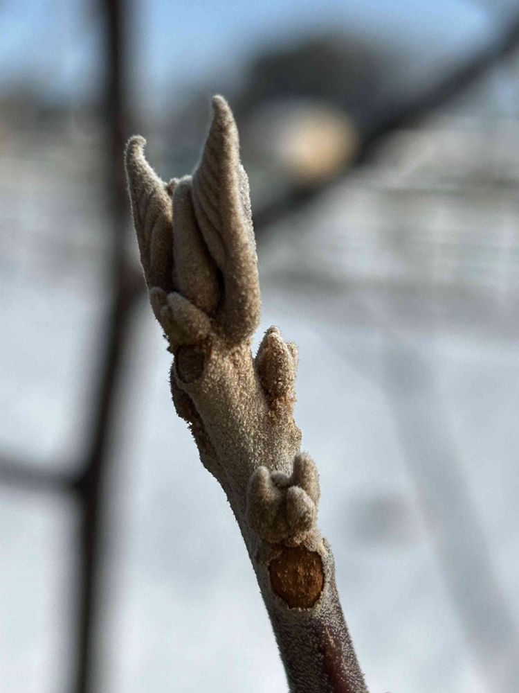 鱗片葉に包まれていない裸芽で、星状毛に包まれています。