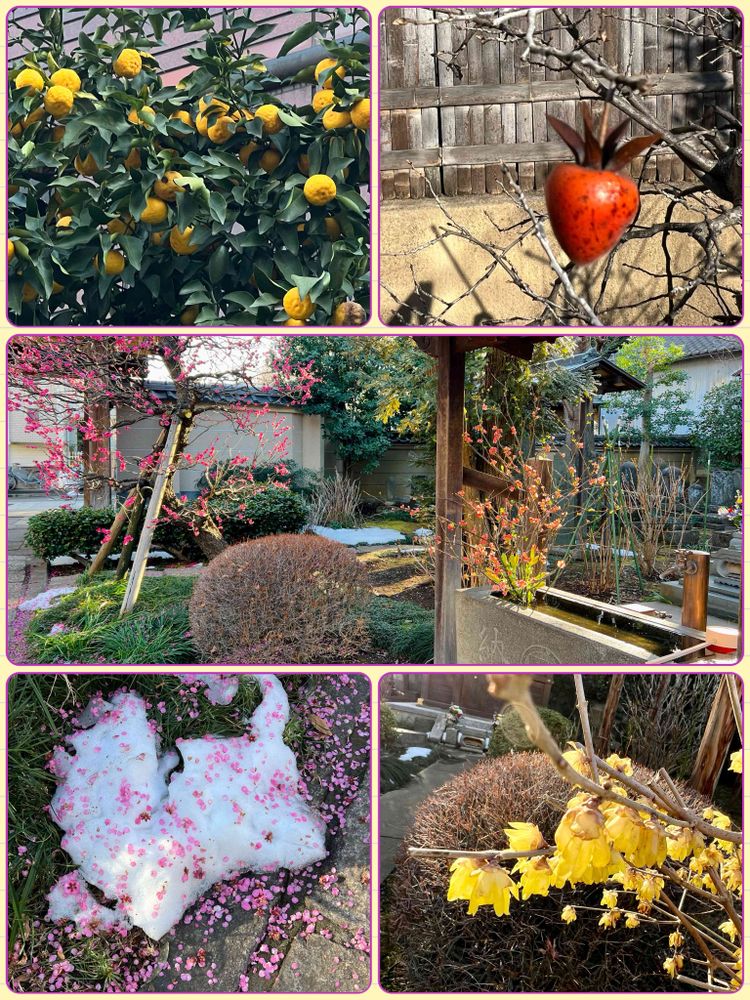 梅の花びらが、まだ残っている雪の上に散って美しかったです💕