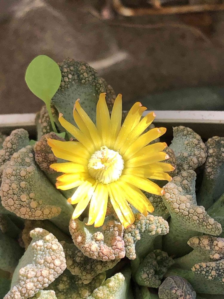 冬生育型多肉メセン見た目の葉っぱに比べお花が可愛い