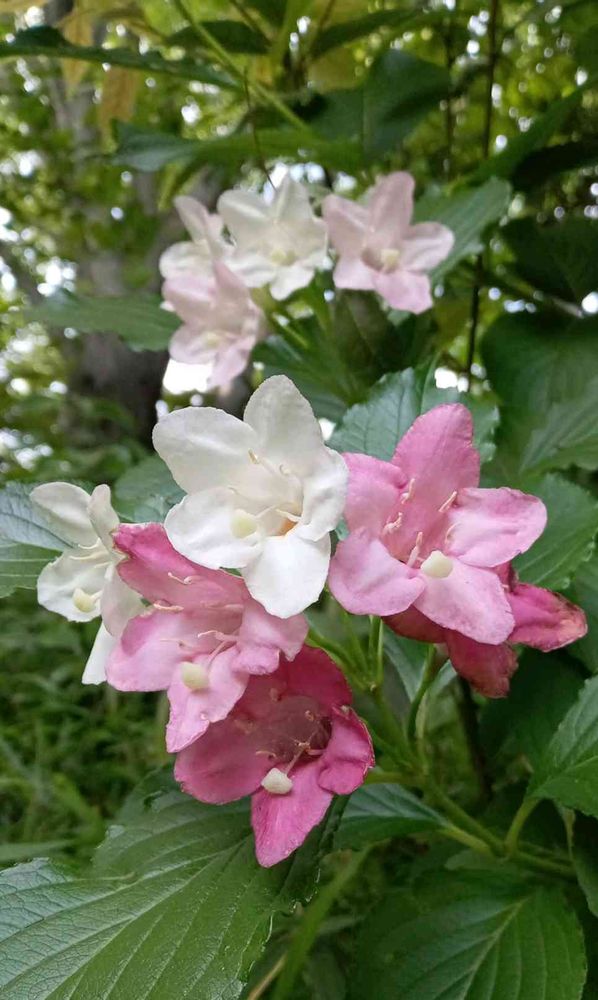 よく似た二色空木(ニシキウツギ)は本種よりも葉が小さくて細く光沢はない。葉裏の葉脈上に毛が多い。花の基部は細くて長い管状。太平洋側に分布する。本種と同じく花色が変化し、白と紅の二色見られるのが名前の由来。