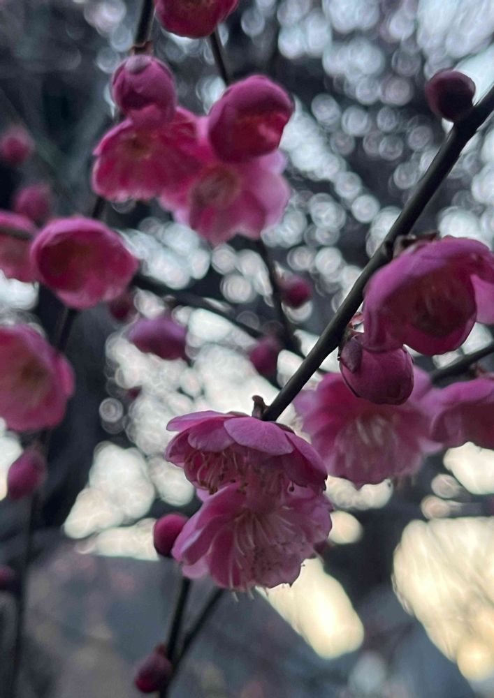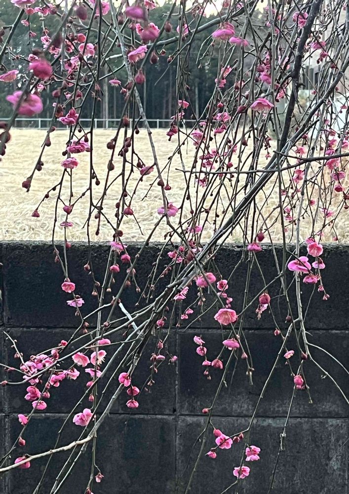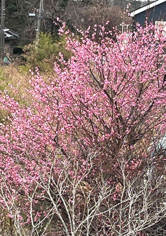 ♡お隣さんの庭に咲いている枝垂れ紅梅の花😊🤗💕💖