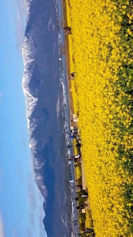 今年の菜の花を見て感激🥰🥰山と湖と菜の花のロケーションはここだけでしょうか??
