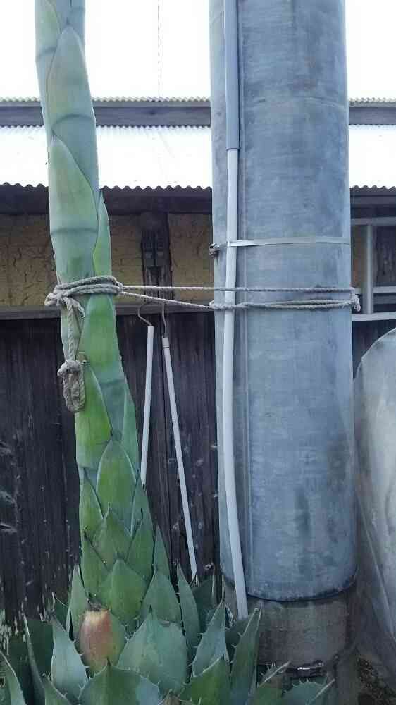 電柱の横はアガベの花なの?