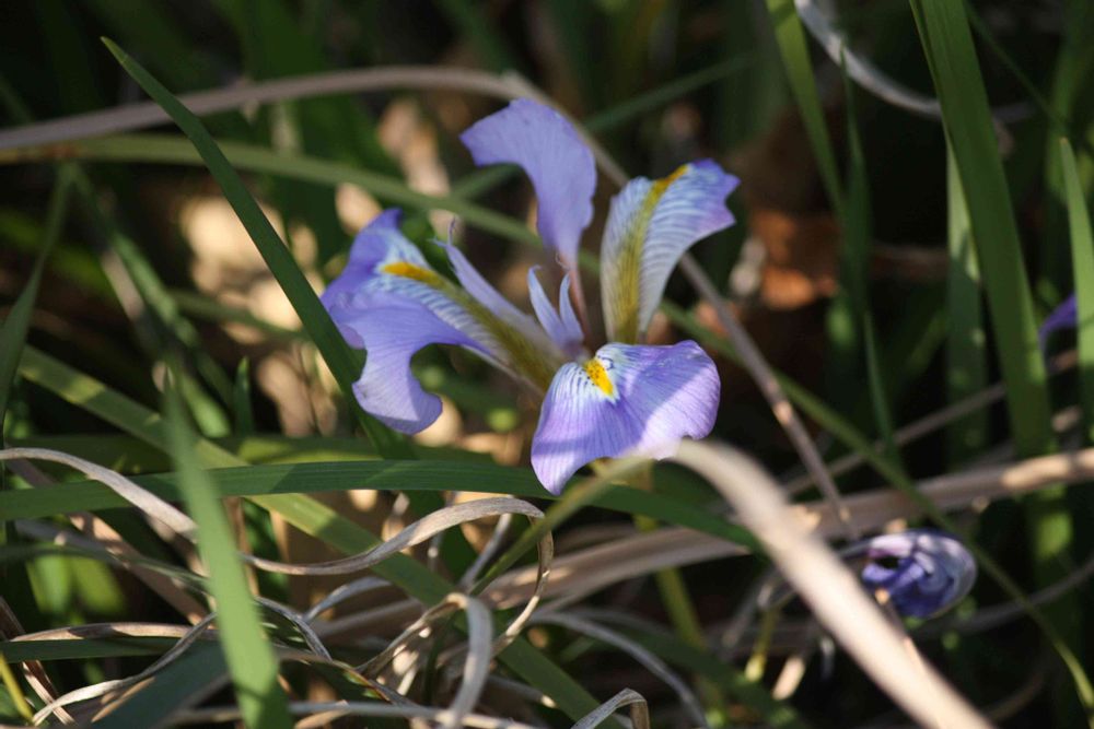 周りの草に埋もれるように咲いているカンザキアヤメ💜