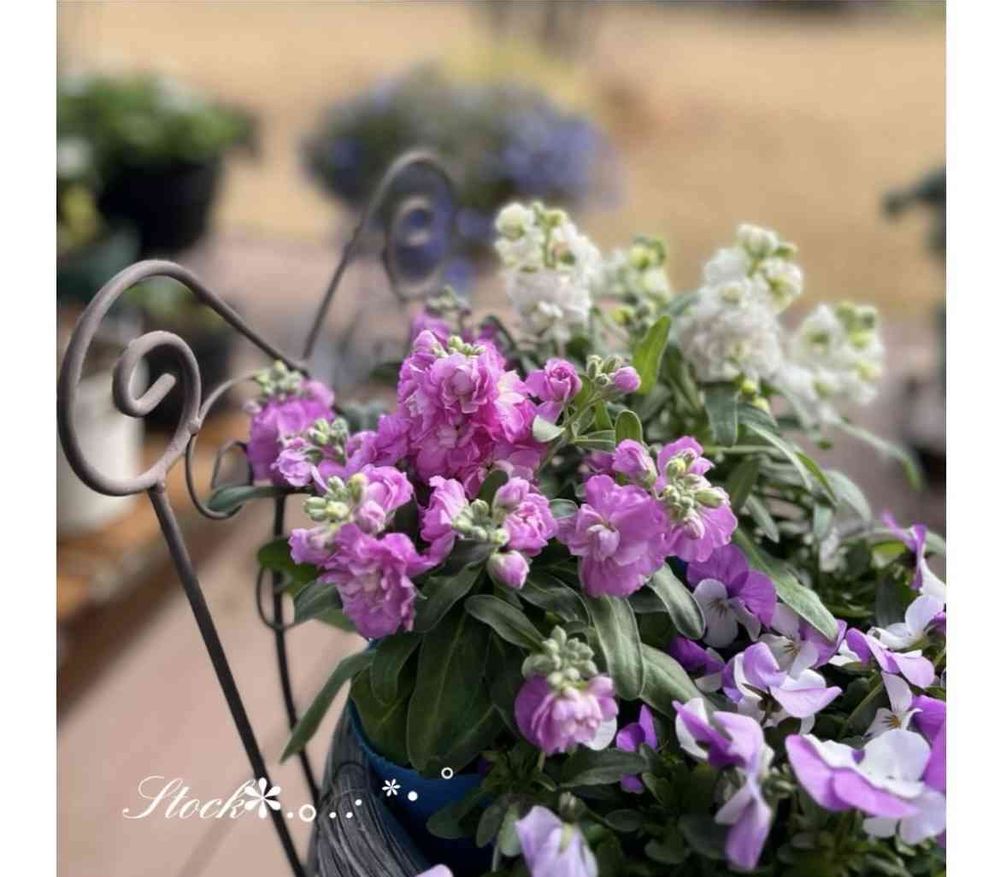 このストックさんは、ハンギング用なのか背丈が短いんですよね🌸🤍🌿