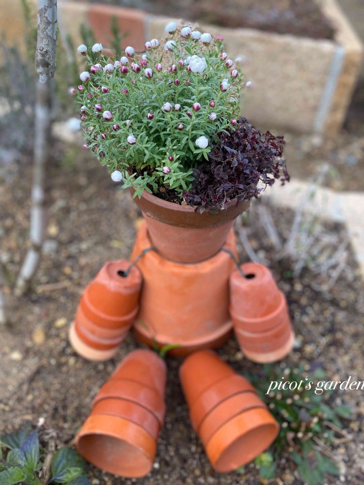 植木鉢の大中小があったので、ポットドールを作ってみました。