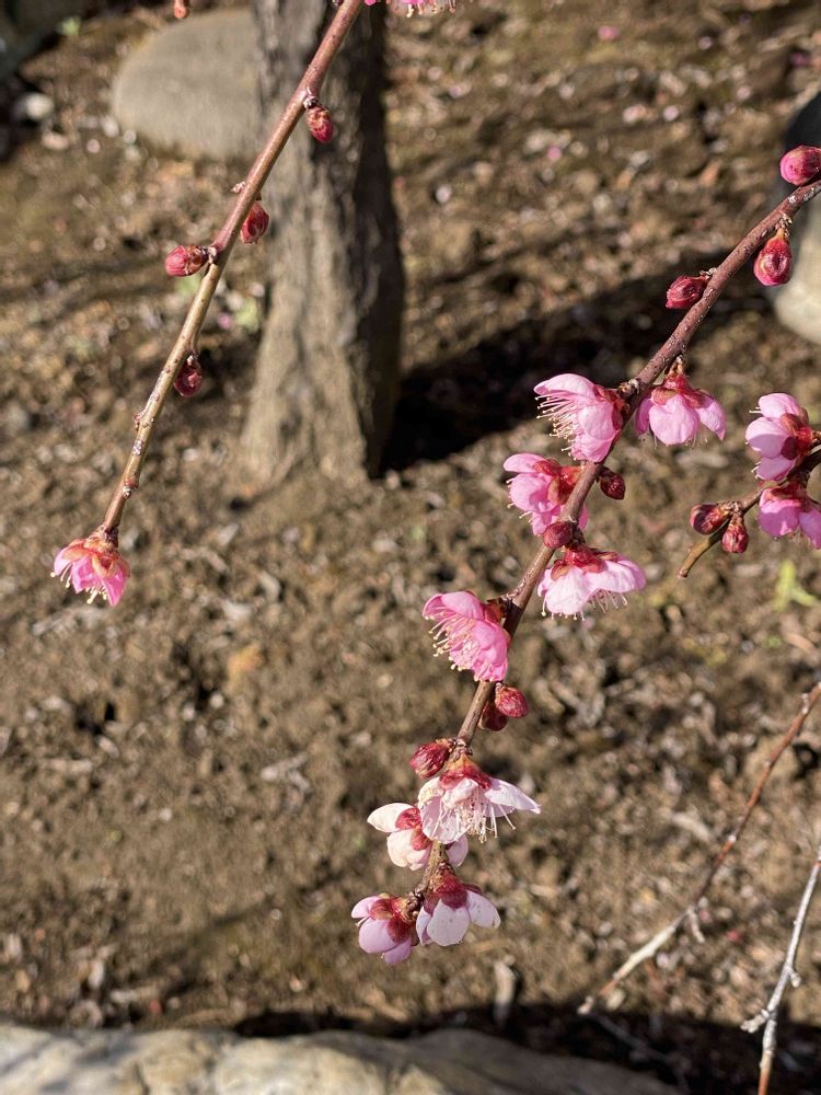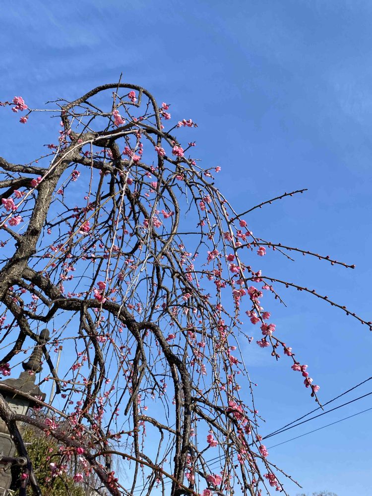 お寺が多い街で、古民家を改装してやっている雑貨屋を目指して歩くと枝垂れ梅(?)が咲いていました。