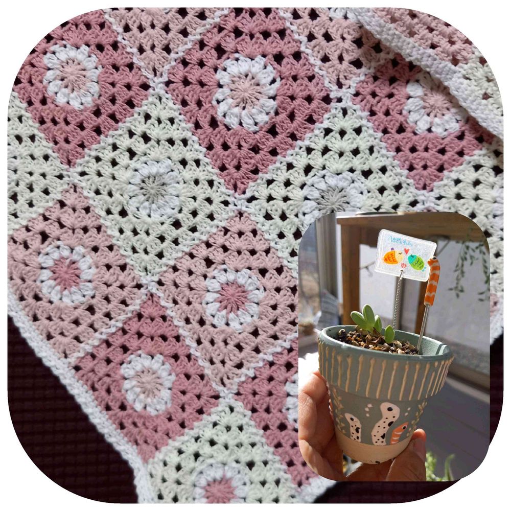 あっ💕ジュン chan❣️の配色の大好きな💕💕❤️モチーフ編みだぁ〜⤴️⤴️😍