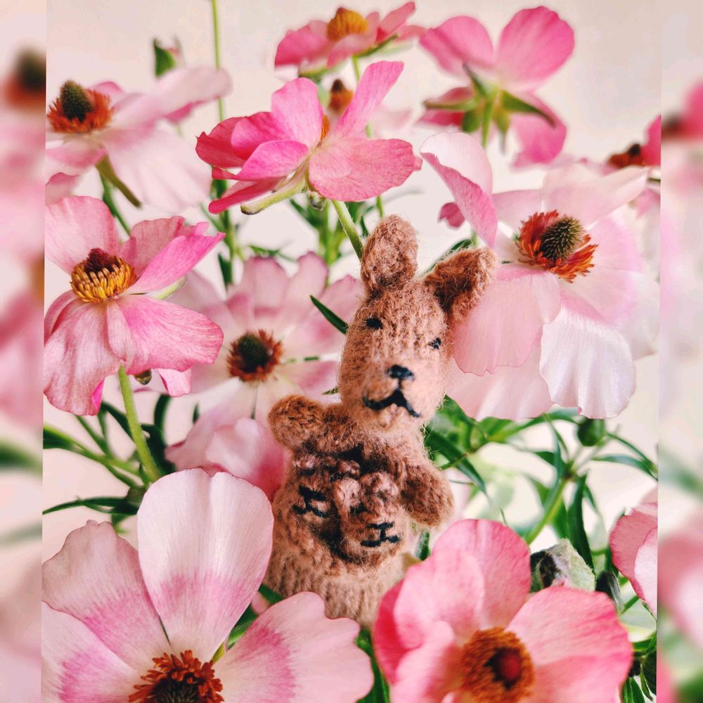 🦘カンガルーを壁に張り付けたり、ラナンキュラスの蕾に被せてみたりして、たかが1picのために時間を費やしてしまいました。😅💦