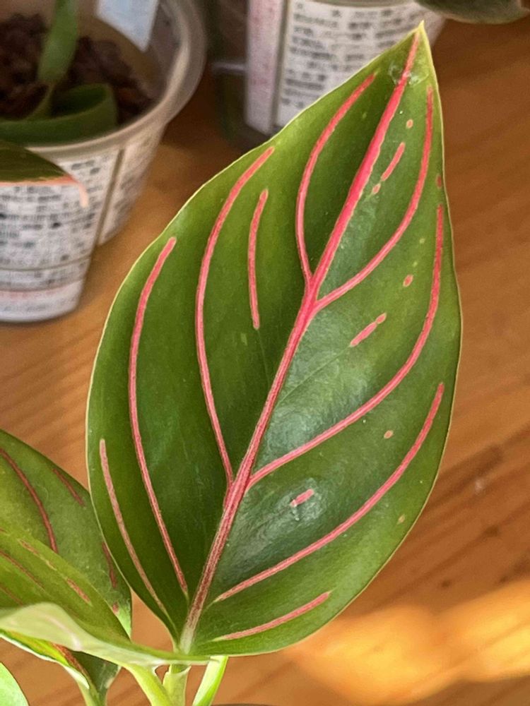 葉脈が赤いのですね😲途切れた部分もあり、とっても不思議で面白い植物ですね。