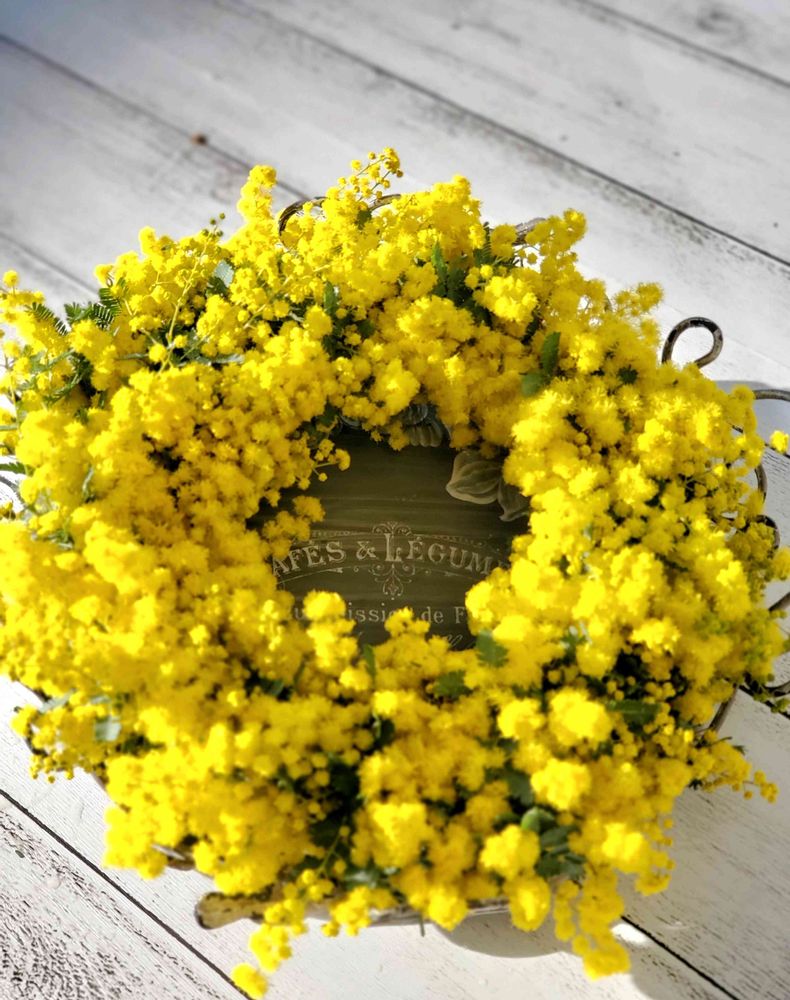 先にミモザのバスケットイッパイの投稿に引き早速リースを作成🟡✨