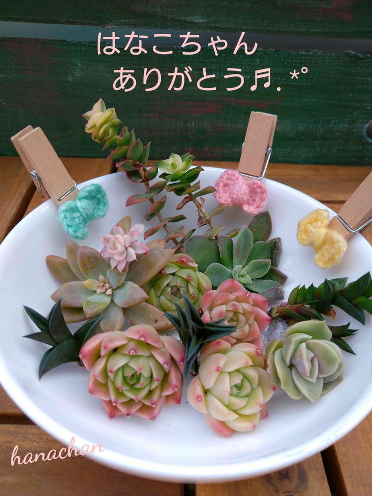 多肉サン普及種ばかりだし、3年前の🎀クリップ大切にしてくれて感激しております🤭花瓶も使ってくれてありがと☺️